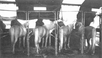 The major group among the perissodactyls (single-toed animals) is the equines; although there was a white rhinoceros in one circus I visited. The ponies are sometimes loose in or out of enclosures, and sometimes tied in stalls with little divisions. The horses were either tied in stalls, or in looseboxes (Figures 16, 17). Sometimes these looseboxes had the effect of isolating the animals more from their environments and their neighbours and it appeared from the analysis of the behavioural results that there were more behavioural problems and abnormalities in those horses compared to those in what one would think are the more restricted stalls.. No horses were kept in loose yards which is ethologically and ethicallv the most acceptable way of keeping them.